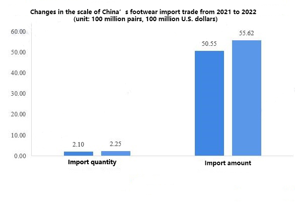 From an import volume perspective, textiles currently dominate the imported footwear products in the footwear market. According to customs statistics, in 2021, China’s import volume of textile footwear products reached an impressive 98.078 million pairs, accounting for a significant 10% of the total footwear imports. In addition, the import volume of rubber and plastic footwear products was 53.382 million pairs, accounting for 23.7% of the total footwear imports. The import volume of leather footwear products was 72.897 million pairs, accounting for 32.3% of the total footwear imports.